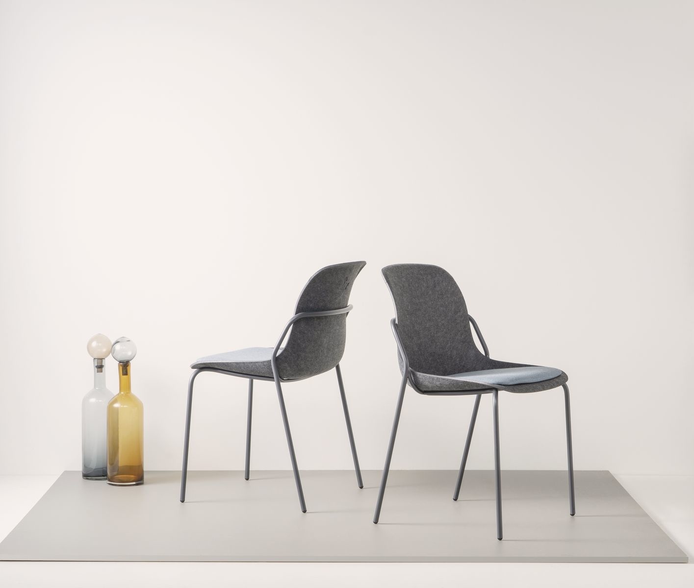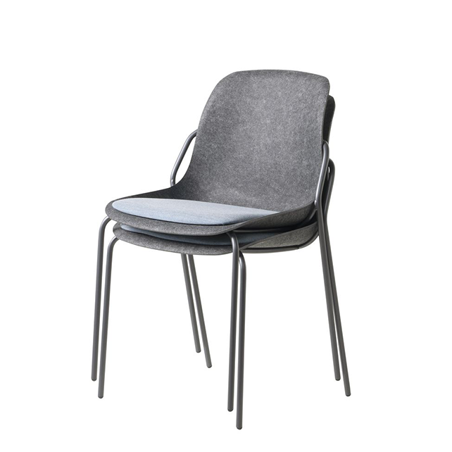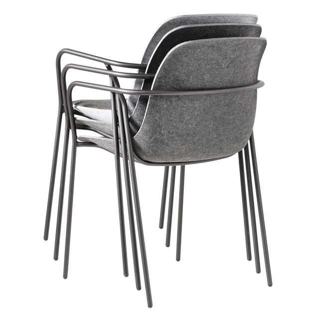 Deze slanke stapelbare stoel is gebaseerd op de vormgeving van de Felt-stoel. Het buisframe volgt nauwkeurig het organische gevormde vilten zitschaaldeel. Dit is niet alleen mooi om te zien, maar het maakt ook een compacte stapeling van de stoelen mogelijk. De vormgeving van de zitting is comfortabel van materiaal en zitcontour. De Felt Fine behoort tot de duurzame Felt-familie.